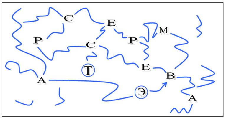 -Молодцы! Следующее задание будет таким: вы видите набор букв, которые соединены дорожками. Пройдите до пункта Т, начиная от стрелочки и выбирая самую короткую дорогу от буквы к букве.