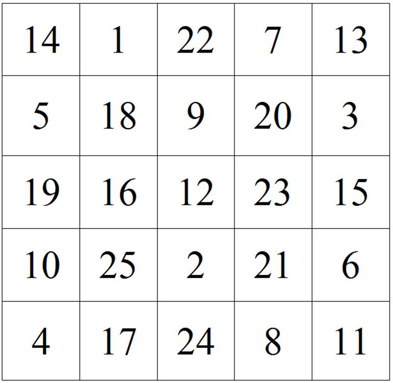 Молодцы! Следующее 4 задание. Вы видите числовой квадрат. Здесь числа от 1 до 25. Они написаны в беспорядке. Ваша задача их быстро найти. Вы должны, показывая найденное число, называть его.